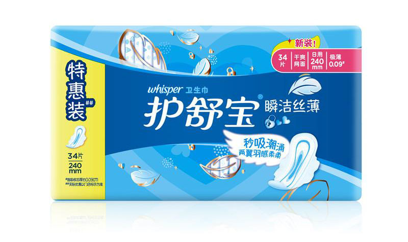 · 护舒宝(Whisper)超薄日用 瞬洁丝薄卫生巾 240mm 34片 (干爽网面 瞬吸透气)(2包)