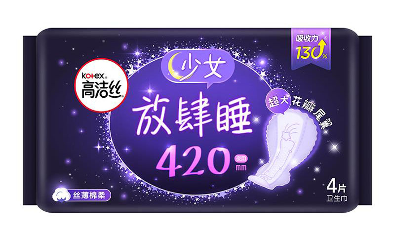· 高洁丝Kotex 放肆睡花瓣扇尾420mm4片 超长夜用棉柔丝薄卫生巾(2包)