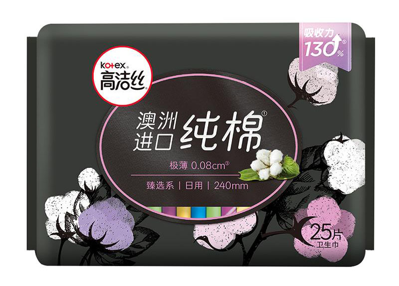 · 高洁丝Kotex 臻选澳洲进口纯棉0.08极薄240mm 25片日用超薄卫生巾(2包)