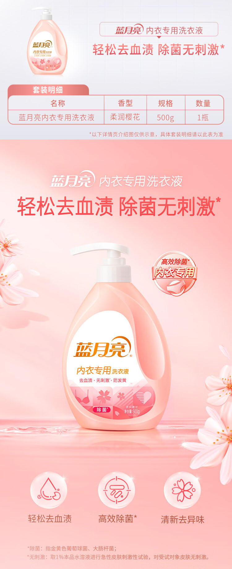· 蓝月亮女士内衣裤专用洗衣液500g生理期去血渍除菌>99%樱花香