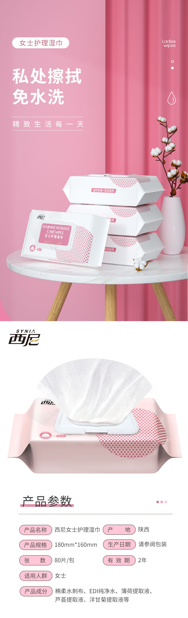 · 西尼synia 私处湿巾抑菌80抽/包女士洁阴卫生清洁抽纸 私密护理湿巾纸80抽/包