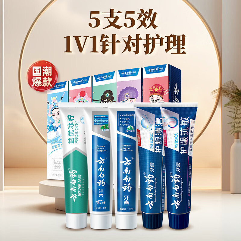 · 云南白药国潮牙膏套装 5效护口500g国粹礼盒5支装