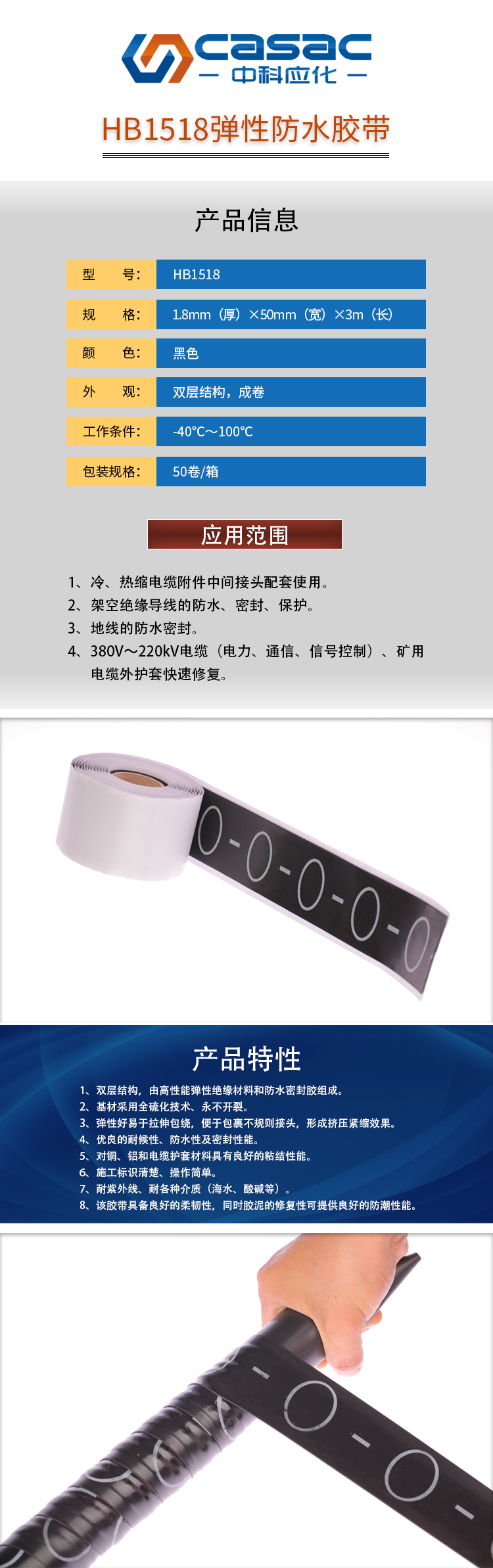 casac/中科应化HB525W"自固化绝缘防水保护片(黑色)"1.8mm*80mm*1m |