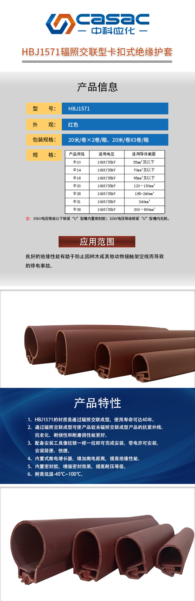 casac/中科应化的修补剂casac/中科应化HBJ1571辐照交联型卡扣式绝缘护套(红色)10KV/Φ28