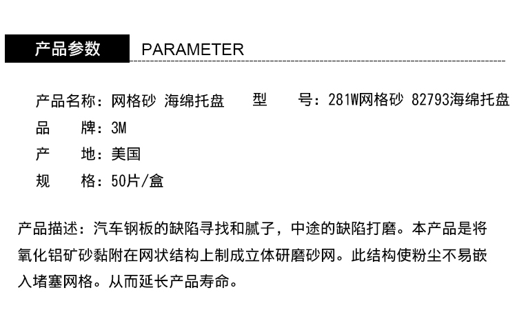艾逊订货号:C1034367 原始型号:网格砂专用托盘 281W-82793 品牌:3M 品牌所属地:国产