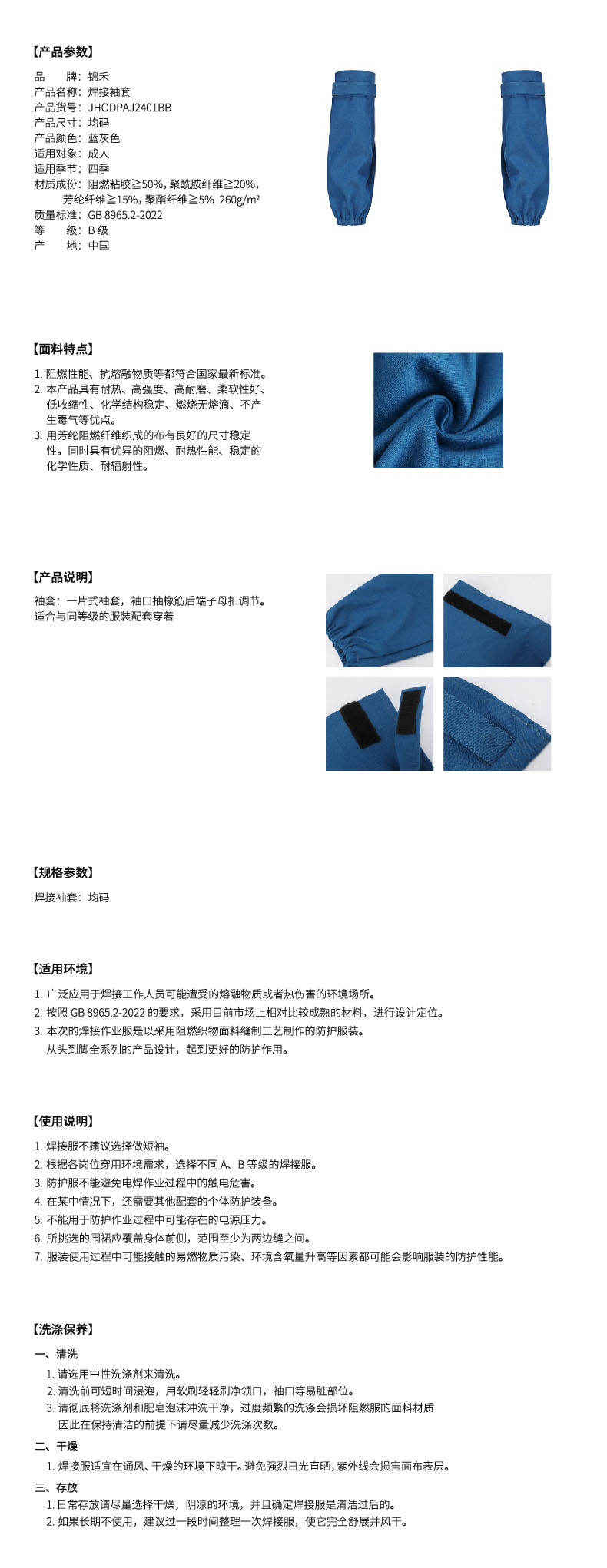 艾逊订货号:J1027777 原始型号:JHODPAJ2401BB 焊接服袖套 品牌:锦禾 品牌所属地:国产
