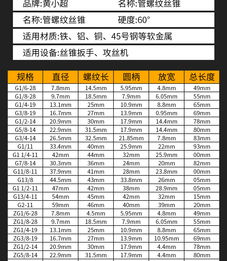 other/其他的丝锥板牙套装英制丝锥3/4”