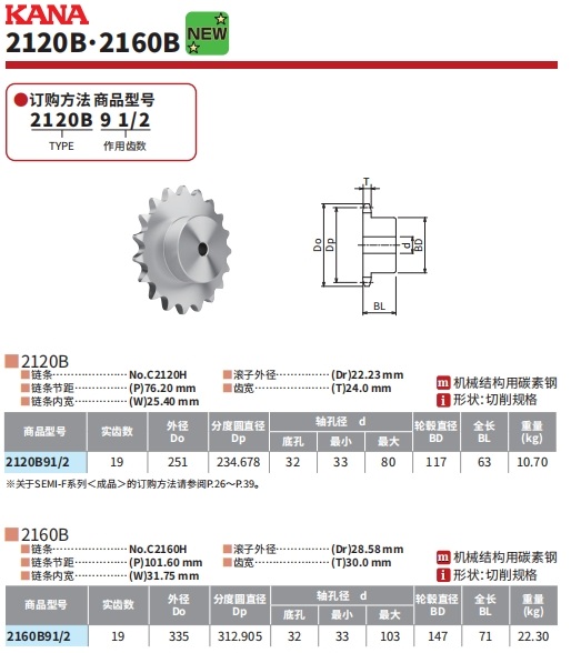 艾逊订货号:L1066836 原始型号:双节距链轮 2160B9-1/2(S) 品牌:KANA 品牌所属地:曹国兴
